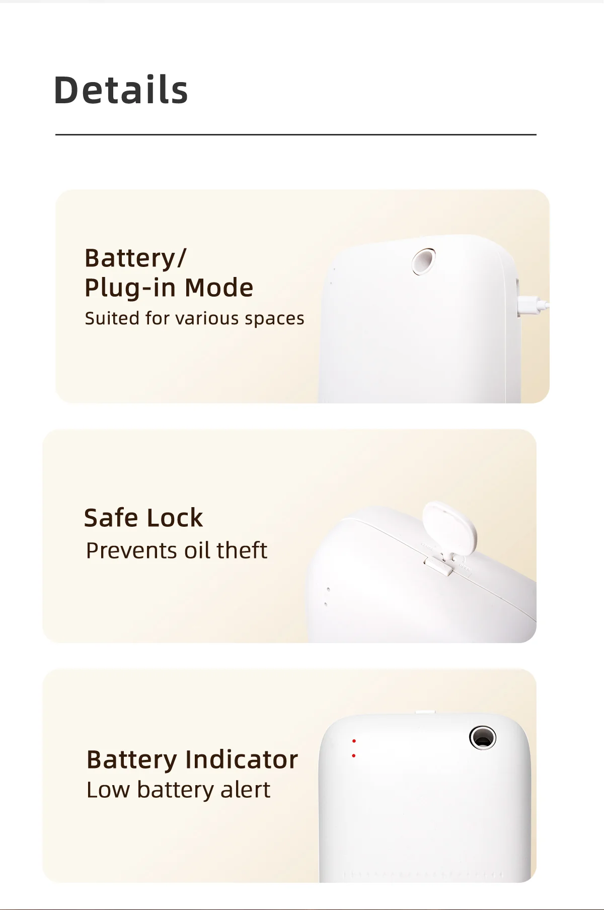 2. Kablosuz ve taşınabilir – Karışık kablolara veda edin! Pille çalışan (D hücreli piller dahil) bu difüzörü istediğiniz yere, masanıza veya komodininize yerleştirebilirsiniz; böylece kokunun tadını istediğiniz zaman, istediğiniz yerde çıkarabilirsiniz.
